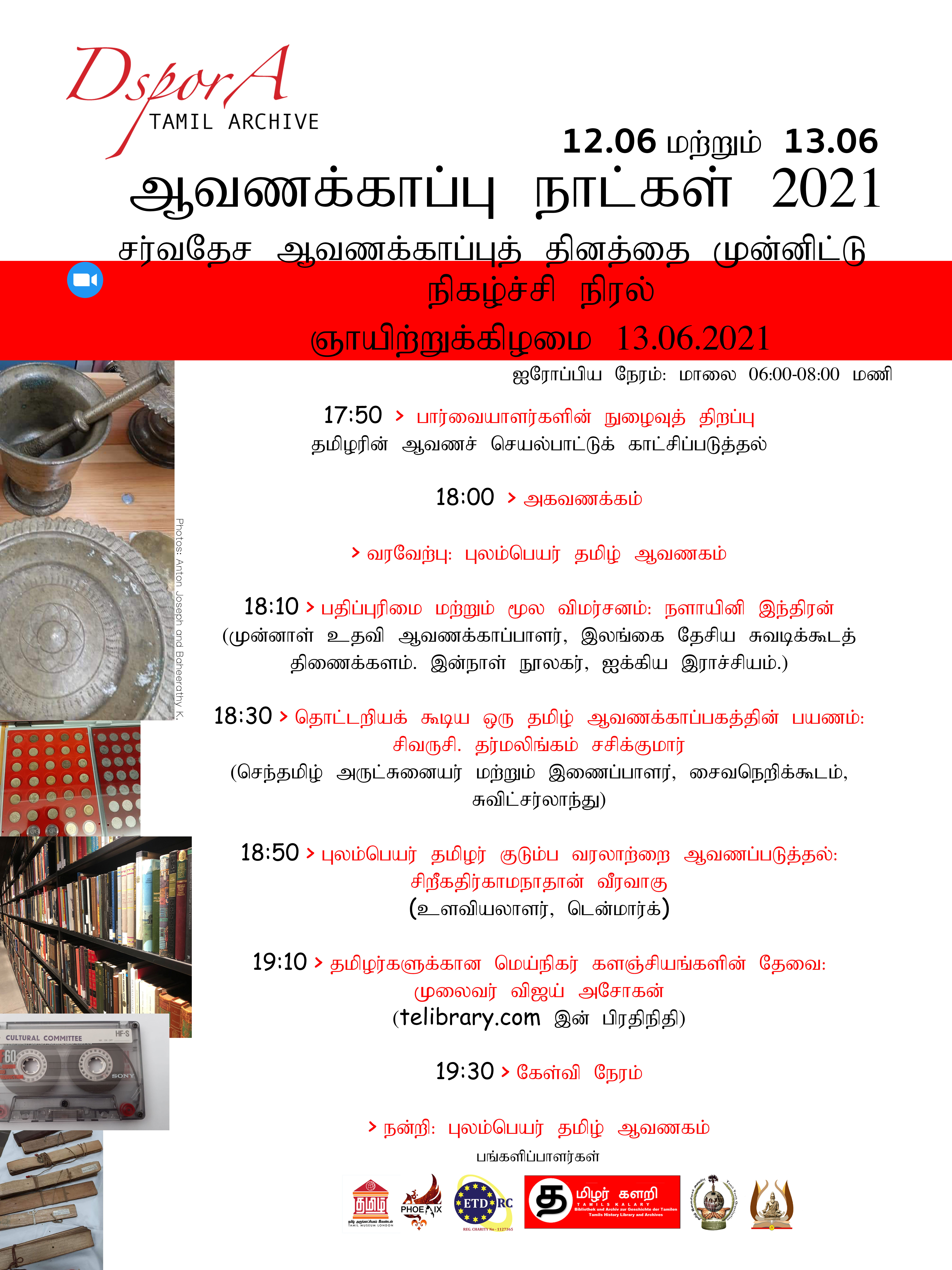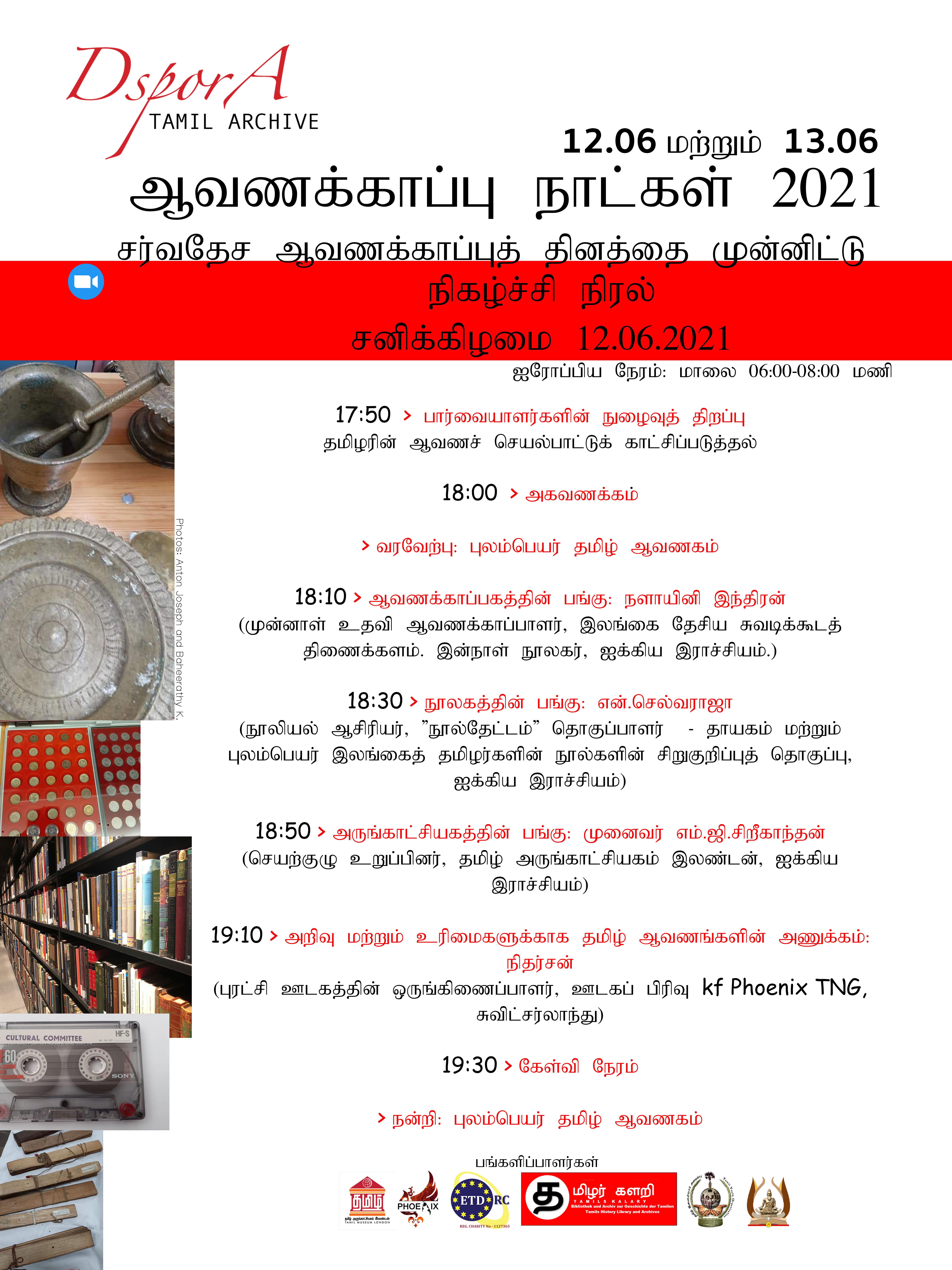 அதன் தொடர்ச்சியாக, சர்வதேச ஆவணக்காப்புத் தினத்தை முன்னிட்டு இரண்டாவது பொது மெய்நிகர் ஆவணக்காப்பு விழிப்புணர்வு மற்றும் தகவல் நிகழ்வை இன்று தாழ்மையுடன் அறிவிக்கின்றோம். இந்த இரு நாள் நிகழ்வு சனிக்கிழமை யூன் 12ம் நாள் மற்றும் ஞாயிற்றுக்கிழமை யூன் 13ம் நாள் ஐரோப்பிய நேரப்படி மாலை 06:00 – 08:00 மணி வரை நடைபெறும். இந்த நிகழ்வு தமிழ் மொழியில் நடைபெறும். தமிழர்களின் ஆவணப்படுத்தல் மற்றும் காப்பகப்படுத்தல் செயல்பாடுகளின் காட்சிக் கூடத்துடன் பார்வையாளர்களின் நுழைவு மாலை 05:50 மணிக்கு திறக்கப்படும்.